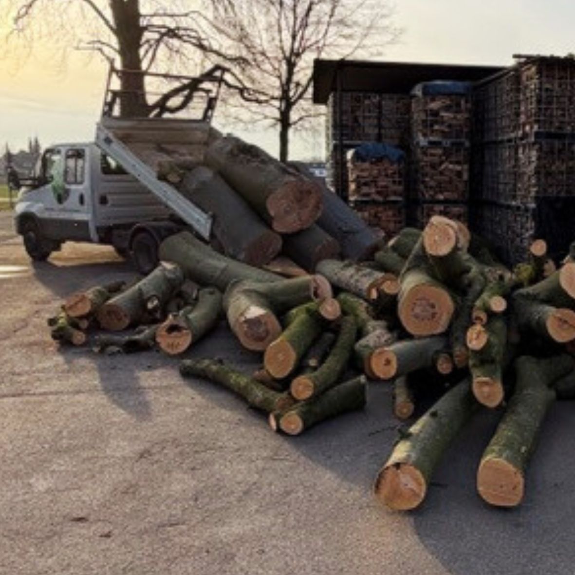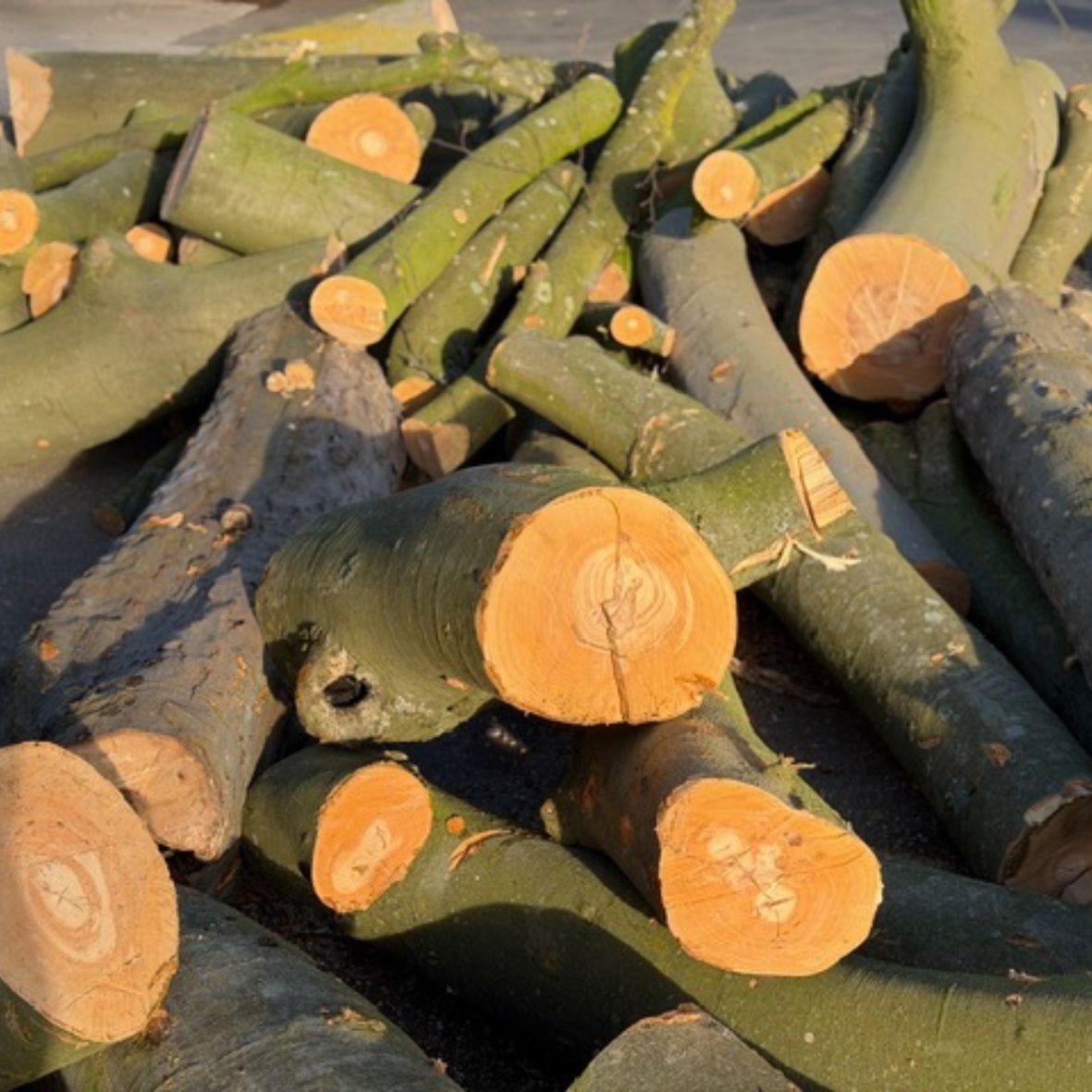 Hier bieten wir Dir Stammholz aus eigener Fällung aus dem Raum Krefeld. Es handelt sich um verschiedene Holzarten. Es ist frisch geschlagen.